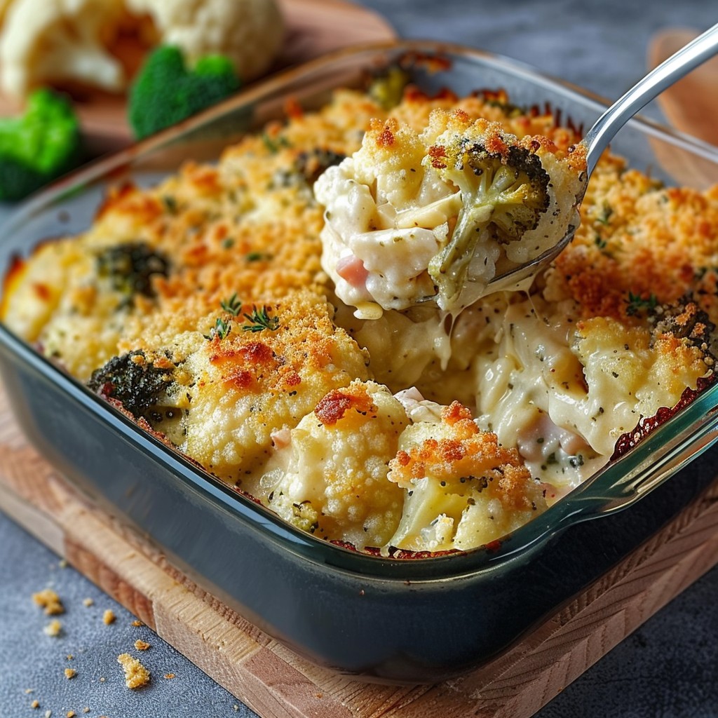 Blumenkohl-Brokkoli-Gratin mit Cantal-Käse