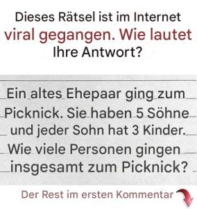 Inaltérés Ehepaar machte ein Picknick. Sie haben 5 Söhne, und jeder Sohn hat 3 Kinder. Wie viele Personen haben insgesamt ein Picknick gemacht?