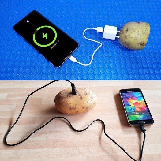 Der Wissenschaftler Haim Rabino behauptet, dass eine Kartoffel die LED-Leuchten eines ganzen Raums vierzig Tage lang mit Strom versorgen kann. Eine einfache Metallplatte, einige Kabel und einige LED-Leuchten können eine Kartoffel in eine brauchbare Alternative zu herkömmlichen Batterien verwandeln. Laut BBC ist die Herstellung einer Batterie aus organischen Materialien so einfach wie die Kombination zweier Metalle: Zink für die negative Elektrode (die Anode) und Kupfer für die positive Elektrode (die Kathode). Energie wird freigesetzt, wenn Elektronen von einer Substanz zur anderen wandern, wie es bei einer chemischen Wechselwirkung zwischen der Säure in der Kartoffel und dem Zink und Kupfer geschieht.