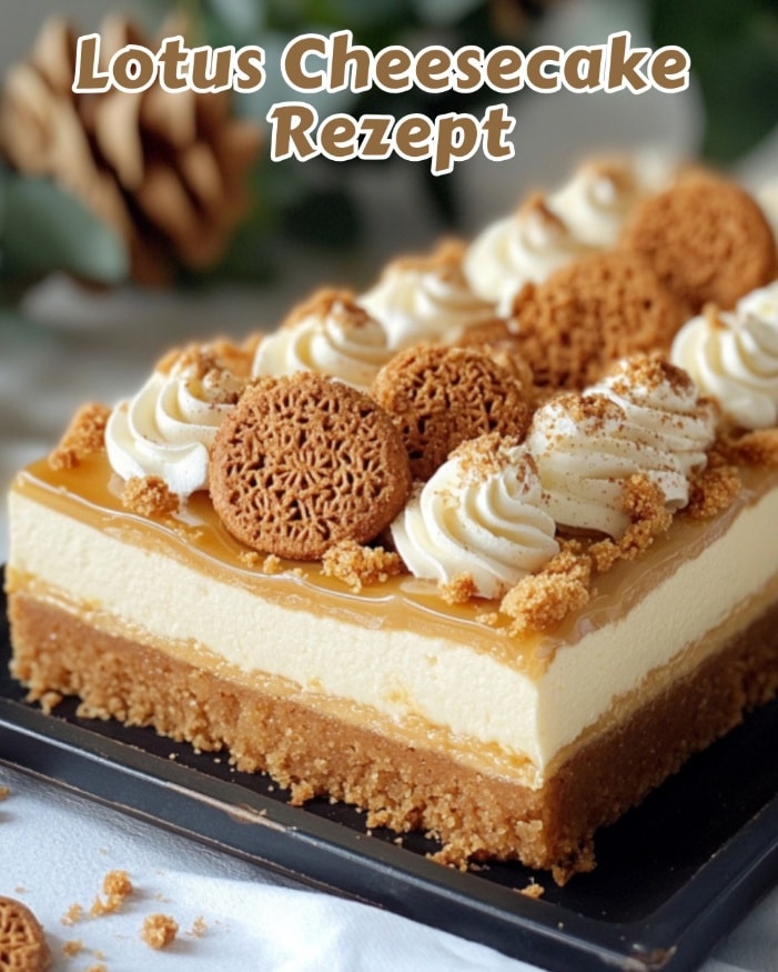Himmlisch cremiger Lotus Cheesecake mit Lotus-Keksen und Karamellsauce – perfekt für jeden Anlass!