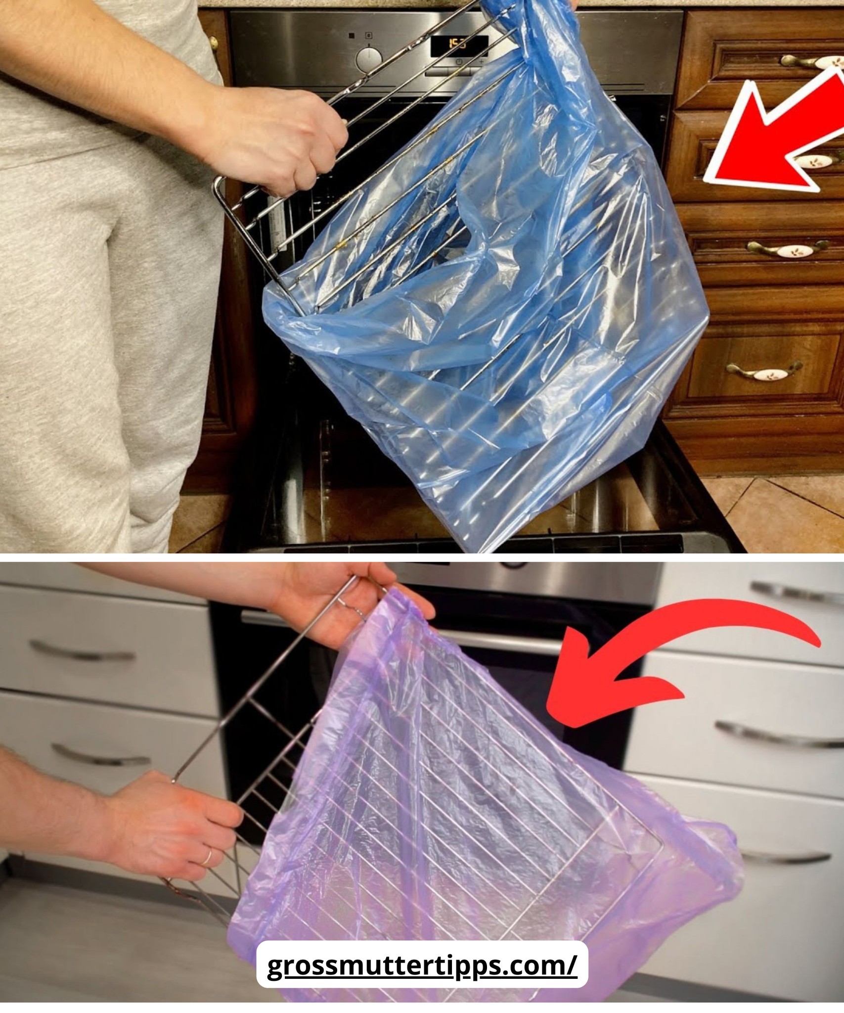 Zuerst benötigen Sie einen sehr großen Sack , wie man ihn zum Werfen von Müll verwendet. Der Beutel sollte den Ofenrost tragen können. Als nächstes benötigen Sie eine Geschirrspülmitteltablette . Wenn Sie es nicht haben, machen Sie sich keine Sorgen, Sie müssen es nicht kaufen. Sie müssen lediglich die Tablette durch normales Waschmittel ersetzen.