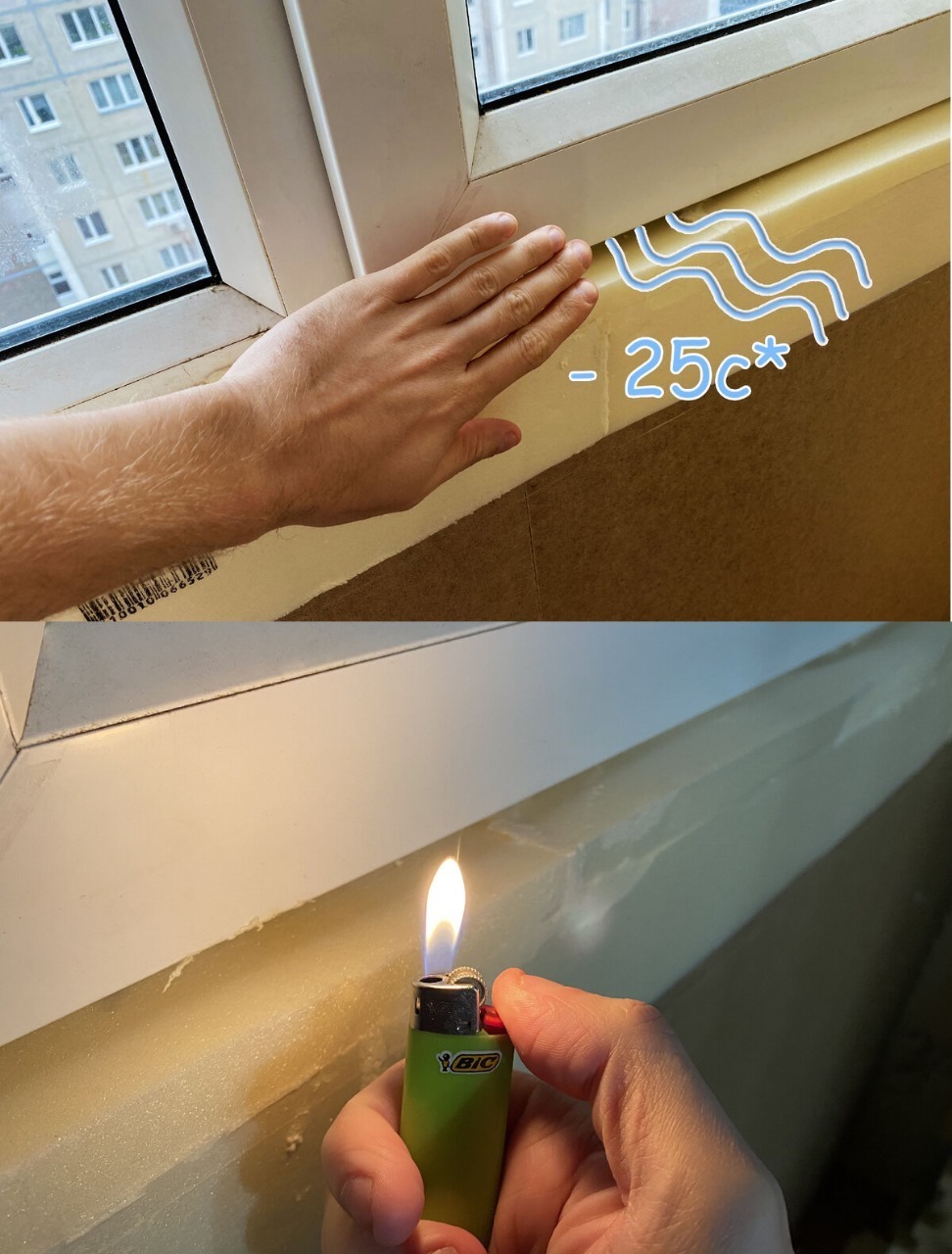 Mit einem Feuerzeug können Sie prüfen, ob ein Fenster luft oder nicht. Wenn die Flamme erlischt, ist eine Justierung erforderlich. (Durch die Galerie scrollen.)
