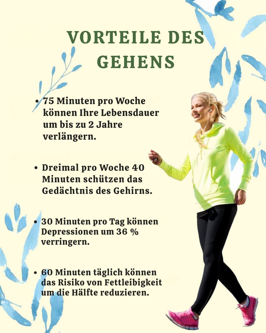 Spazierengehen ist eine der zugänglichsten und gesundheitsförderndsten Bewegungsformen, ganz ohne spezielle Ausrüstung oder Kosten ![]()