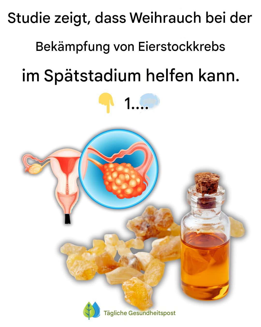 Eine Studie der Universität Leicester ergab, dass eine im Weihrauch enthaltene Verbindung namens AKBA (Acetyl-11-Keto-Beta-Boswelliasäure) die Fähigkeit besitzt, Krebszellen bei Eierstockkrebs im Spätstadium zu bekämpfen (3).