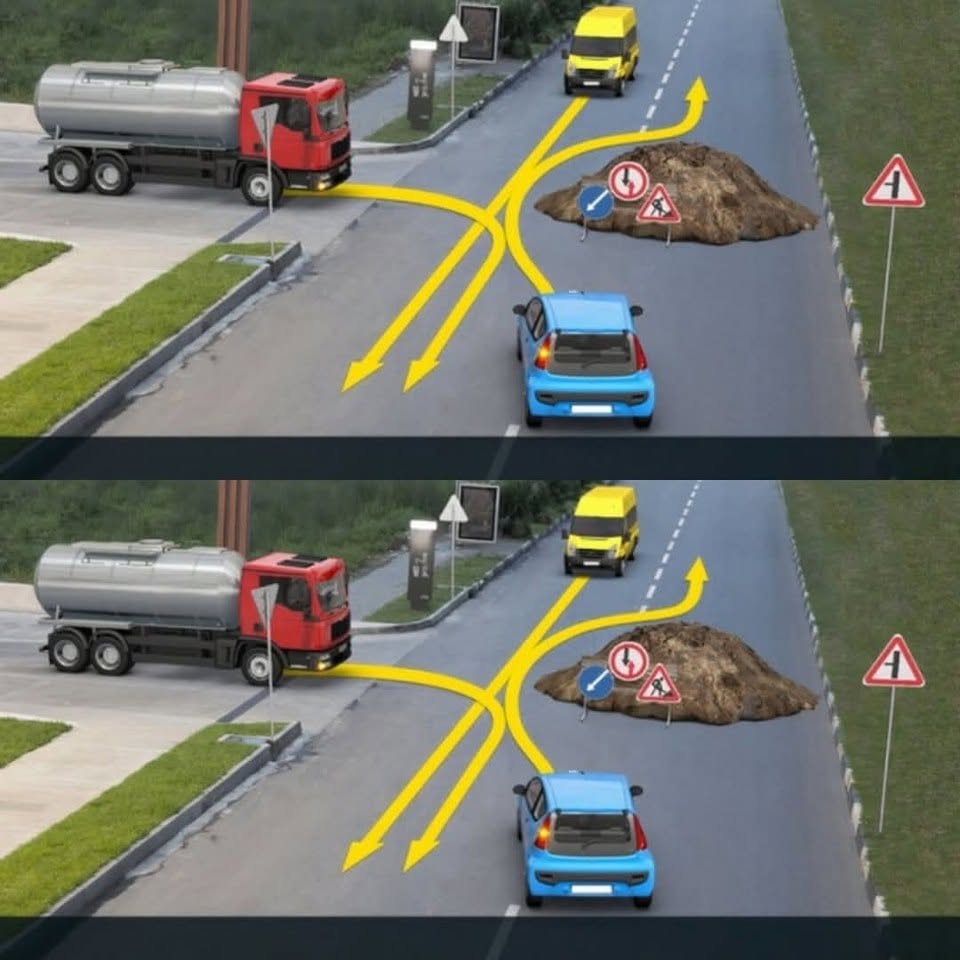 - Befindet sich das blaue Auto an einer Kreuzung oder Einmündung?